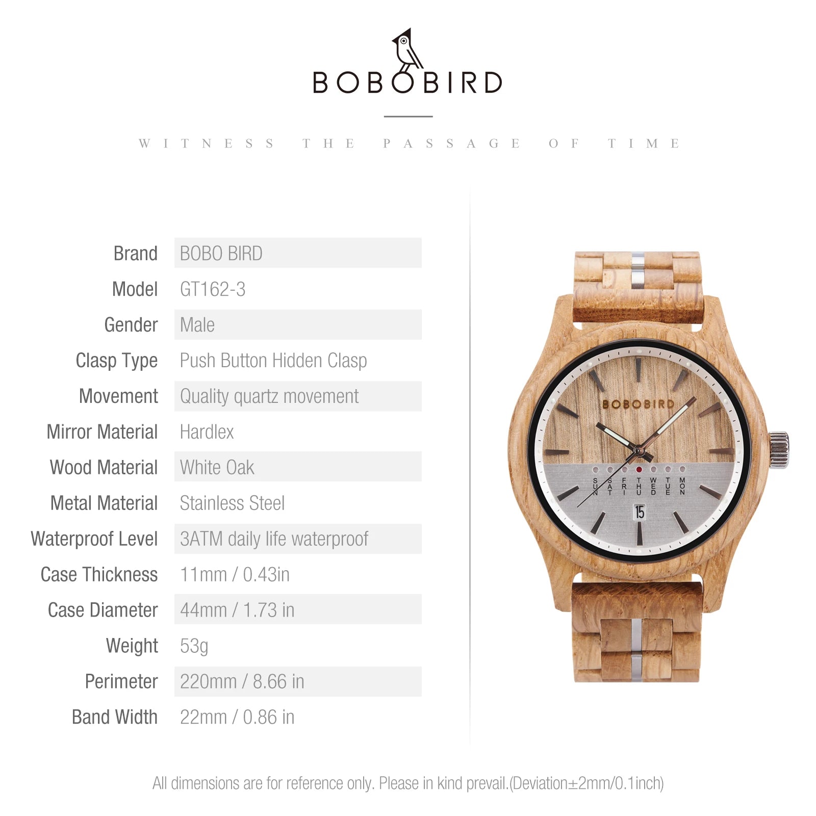 This BOBOBIRD Wooden Watch is crafted from premium natural wood, offering a clean, refined look with a modern touch. The light wood case and matching wooden strap highlight the beauty of organic grain patterns, making every piece unique.